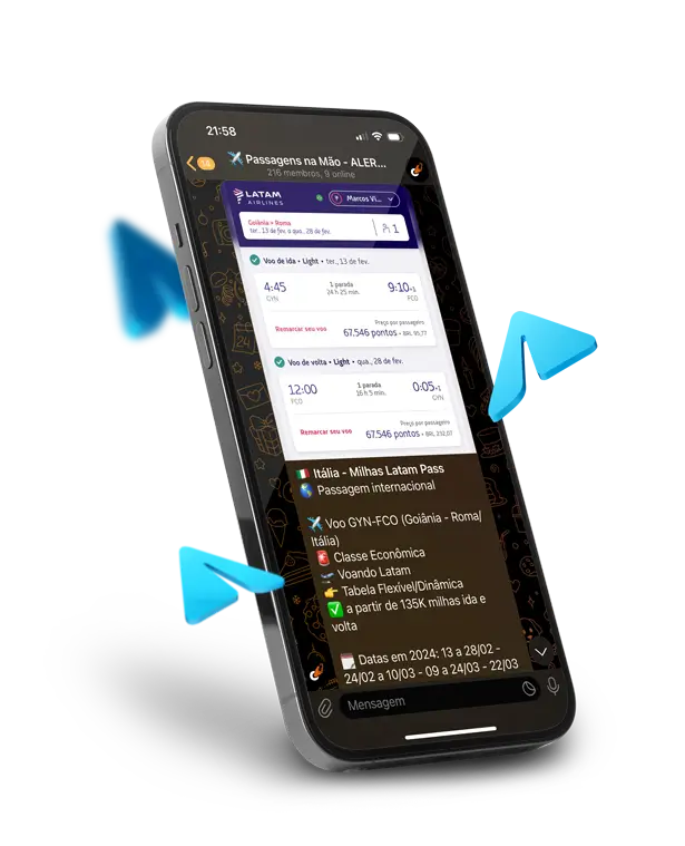 Receba as melhores oportunidades de emissões com milhas, diariamente, na palma da sua mão.